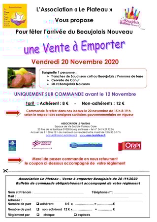 23. octobre 2020 ANNULATION - Vendredi 20 novembre - Beaujolais Nouveau ! ** ANNULATION DE LA VENTE A EMPORTER **** La situation actuelle nous oblige malheureusement à annuler la vente à emporter pour le Beaujolais nouveau . Téléchargez votre bon de commande ! coupon de commande à télécharger.pdf Document Adobe Acrobat 246.3 KB Télécharger tagPlaceholderCatégories : Écrire commentaire Commentaires: 0