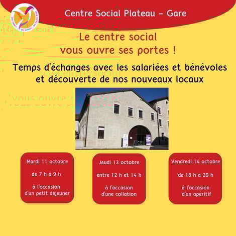 02. octobre 2022 11 - 13 et 14 OCTOBRE - PORTES OUVERTES Nous organisons 3 nouveaux rendez-vous ! Venez nous rencontrer sur un de ces 3 moments de convivialité ! tagPlaceholderCatégories : Écrire commentaire Commentaires: 0
