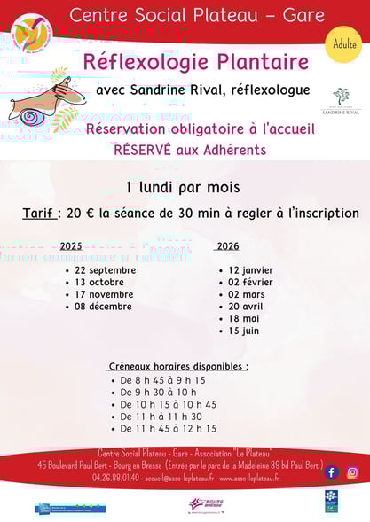 Uniquement sur réservation obligatoire auprès de l'accueil - Réglement impératif à l'inscription