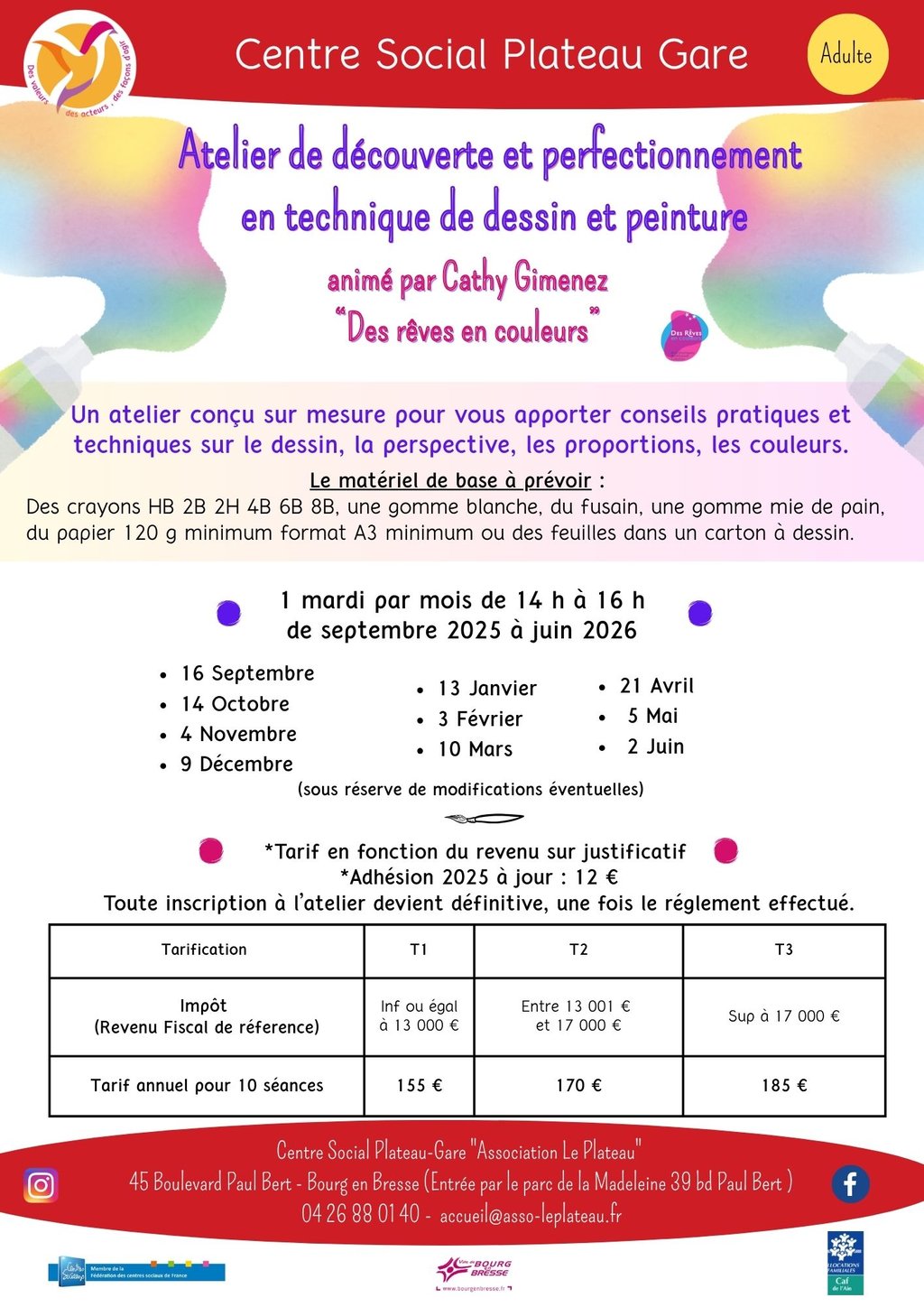 L'adhésion annuelle à l'association est obligatoire pour participer à cet atelier.