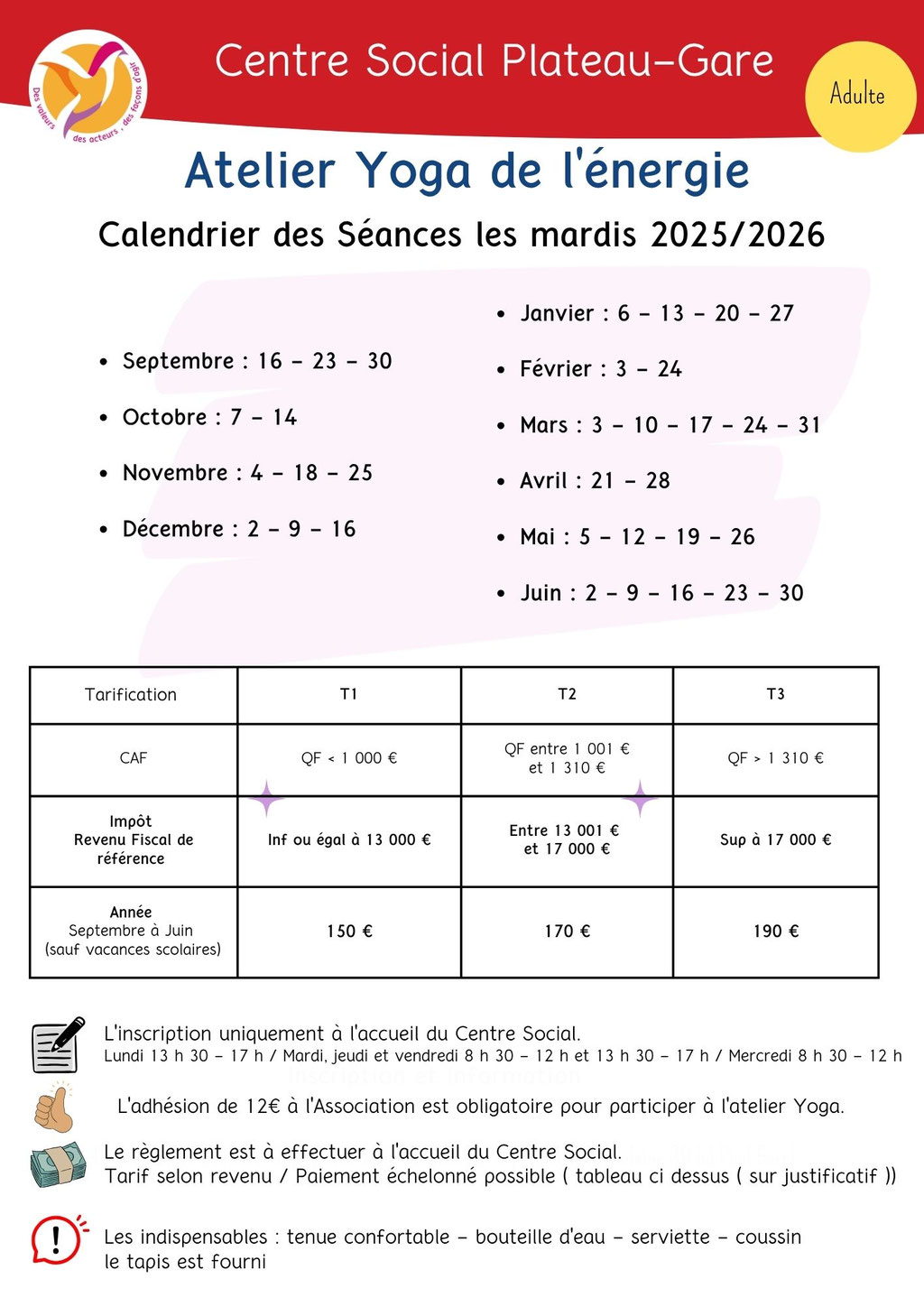 L’inscription et le règlement se font à l'accueil durant les heures d'ouverture avant le 16 septembre dans la limite des places disponibles.