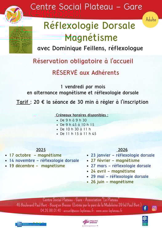 Uniquement sur réservation obligatoire auprès de l'accueil - Réglement impératif à l'inscription